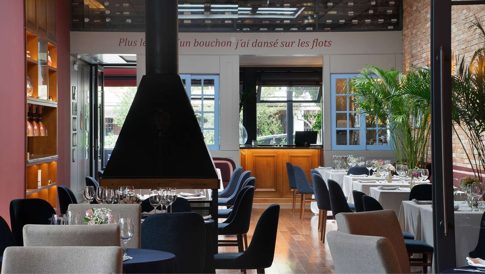 A ideia foi conceber um novo local mantendo o aconchego e atmosfera romântica, características do Le Bateau. A lareira da antiga casa foi transferida e instalada no salão principal, preservando a memória e as lembranças. E os materiais escolhidos são madeira, tijolo de demolição e ladrilho hidráulico, que são referências antigas recebendo nova roupagem.
