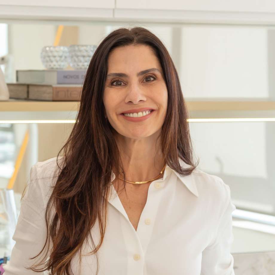 A identidade visual da profissional, que traz o dourado como elemento principal, norteou a concepção cromática do projeto. A paleta combina tons claros, com predominância do branco e do bege suave, harmonizados com nuances amadeiradas. O dourado, aplicado estrategicamente em luminárias, metais, puxadores e elementos da marcenaria, confere sofisticação e aconchego aos ambientes.