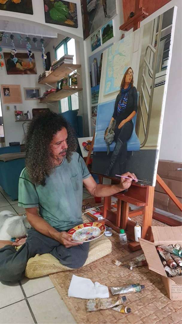 Minha proposta foi que, em meio a quadros nas paredes e elementos característicos de um ateliê de artista, como o cavalete para sustentar a obra durante sua feitura, Irley Jesus trabalhasse telas com sua pintura a óleo para aproximar o público da arte. Em uma das galerias do inédito Espaço de Arte da CASACOR Rio Grande do Sul, projeto de Karina Capaverde e Luciano Mota, o artista marcou a programação do evento. A proposta exibiu uma trajetória de superação batizada de Minhas Asas, no terminal 2 do Aeroporto Salgado Filho, onde apenas as asas dos aviões protagonizavam antes essa área, demarcada pela pintura mural de Aldo Locatelli “A Conquista do Espaço.” O próprio Irley Jesus conquistou o seu espaço como artista nas asas da arte, apesar das limitações decorrentes de uma poliomielite na infância. Sua energia, força, alegria e astral fizeram decolar seus sonhos.