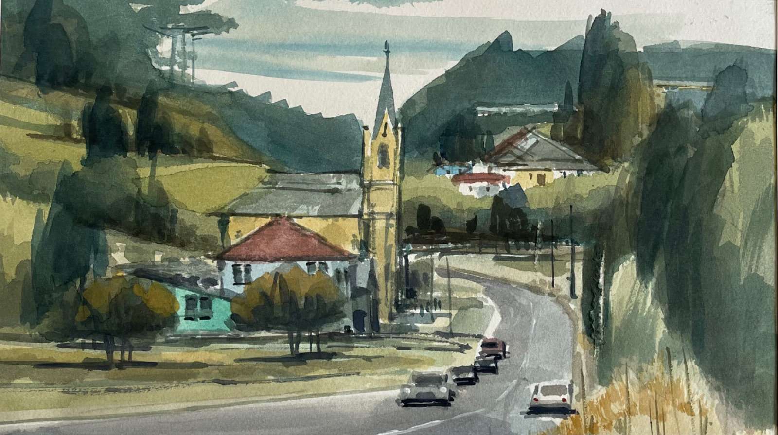 Nos últimos anos, Joaquim voltou-se também à Serra Gaúcha, especialmente à região de Gramado, onde encontrou novas inflexões para sua paleta. Ali, o longevo artista experimentou o contraste entre névoas densas e cores filtradas, registrando igrejas, pontes, casas, animais e morros, caminhos entre a arquitetura singular da imigração europeia. A Serra surge como contraponto poético a Porto Alegre – se a Capital lhe oferece ritmo urbano e transparências, Gramado lhe devolve horizonte íntimo e silêncio.