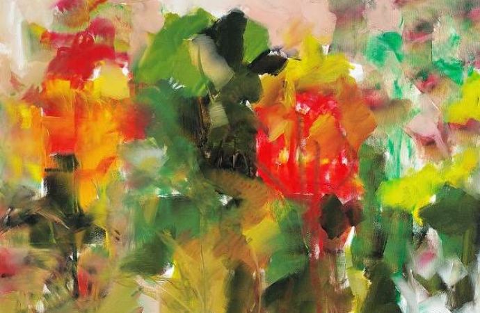 Cores em Movimentp, 70x 90cm, uma das obras de Gheno em exposição. Crédito: Nádia Raupp Meucci
