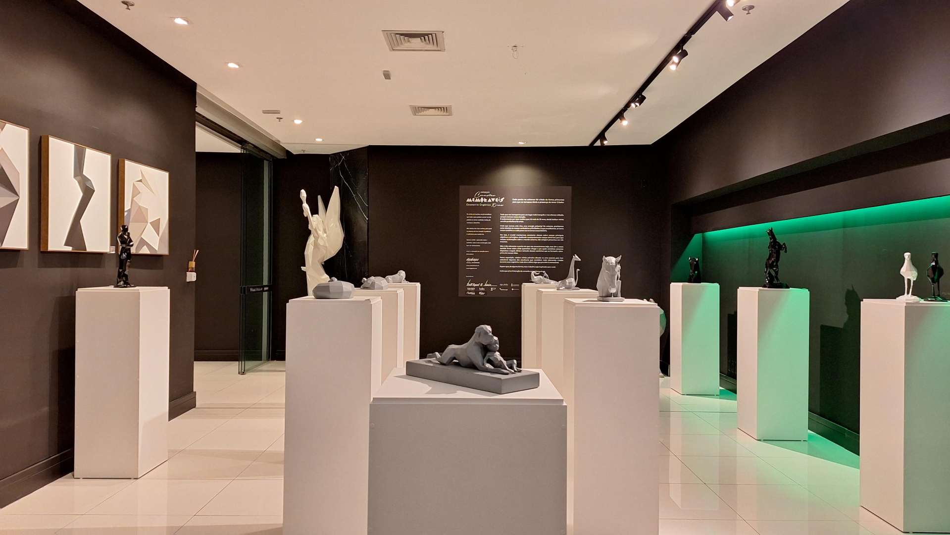 De um lado, 7 esculturas, que os visitantes verão sobre tótens, nas quais Marcos VAAndrade faz nova incursão pela temática dos animais, uma constante na sua obra escultórica. A razão para a sua ligação com essa temática reside no fato de que o artista enxerga nessas criaturas tanto beleza estética quanto sabedoria - e ambas as coisas o tocam.