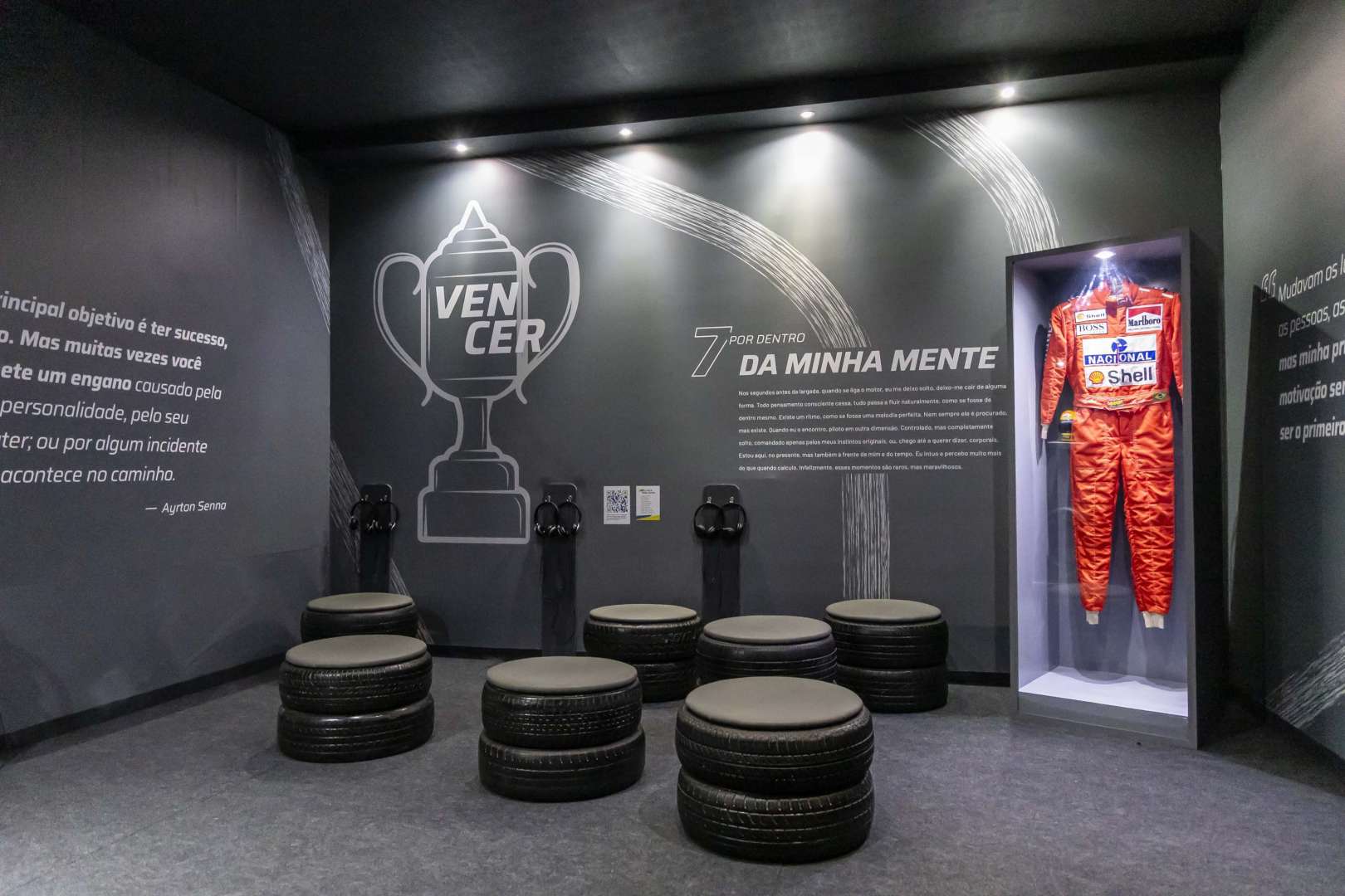 A experiência também transporta o público para o clima das mais eletrizantes corridas do piloto, com pneus reais da Fórmula 1 e recursos que evidenciam o talento mecânico de Senna, relembrando momentos do período em que piloto morou na Inglaterra .? Um dos momentos mais impactantes da mostra é a sala imersiva com arquivos de áudio cuidadosamente selecionados, que convida o visitante a mergulhar nos pensamentos do piloto e refletir sobre sua visão de mundo.