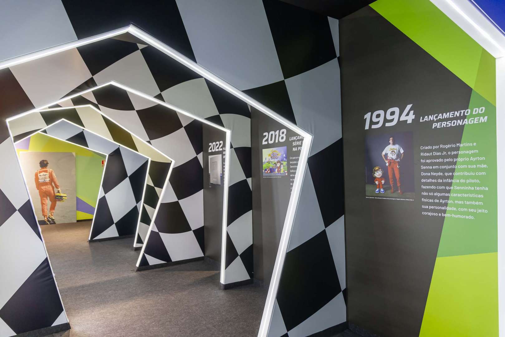Compreendendo uma boa parte da exposição, é um túnel do tempo que celebra o legado do piloto, com informações e imagens do?Instituto Ayrton Senna; Senninha, personagem infantil lançado por Ayrton; e outras iniciativas que surgiram a partir de sua histórica carreira.