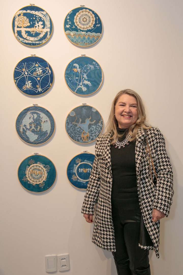 A exposição “ENTRELINHAS: linhas de memória, gesto e matéria em atravessamentos poéticos”, teve vernissage na noite de ontem, 31 de julho de 2025, na Gravura Galeria de Arte. 26 artistas contemporâneos apresentaram obras com linguagens que transitam e se contrapõem, trazendo um conjunto curioso e reflexivo para as salas da galeria. Ana Zavadil, curadora da mostra, afirmou não existir uma linha cronológica para visitação, sendo possível iniciar a partir da obra que mais chama a sua atenção. Estiveram presentes, artistas, arquitetos, familiares e amigos.