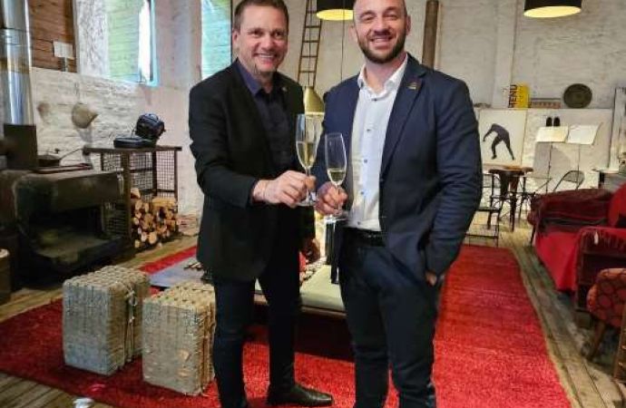 Imagem: Enólogos Dirceu Scottá (Vinícola Dal Pizzol e comité técnico ABE) e Mário Lucas leggli (Vinicola Czarnobay e presidente ABE), durante o almoço de lançamento para divulgação da 33a Avaliação Nacional de Vinhos. Foto Criz Azevedo