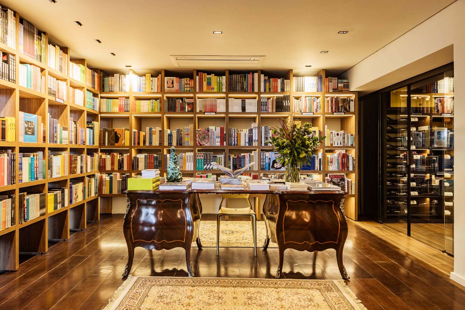 Instalada em uma residência da década de 1970, com projeto é assinado pela arquiteta Ana Freitas, do escritório ADI Arquitetura, a Universos surge como um espaço multifuncional inédito com cerca de 500 m². “O projeto foi distribuído em três pavimentos, contemplando livraria, adega para vinhos, cafeteria - com área interna e externa coberta -, áreas administrativas, de serviços e estacionamento”, explica a arquiteta. Apesar de revitalizada, a casa seguiu um projeto que preservou boa parte da planta original com o propósito de manter viva a história do local, reformulando apenas a sua finalidade.