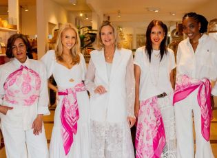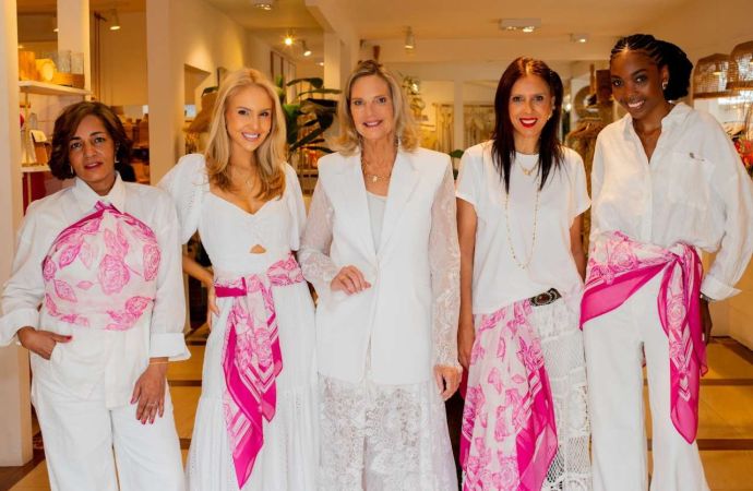 O ponto alto da comemoração foi o desfile com as voluntárias da Liga, que encantaram com produções da L’arrivée, conduzido pela ex-Glamour Renata Ryff Moreira. Para marcar a data, a designer Tânia Souza desenvolveu um lenço exclusivo inspirado na rosa – símbolo da Liga –, enquanto a artista plástica Tânia Cauduro criou três telas em tons de rosa para as vitrines. Toda a cenografia floral, também em rosa, foi assinada pela Granda Fiore.