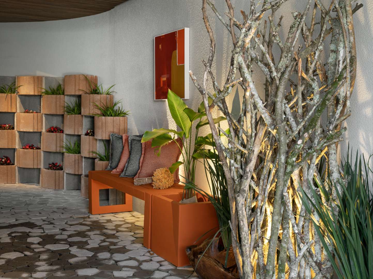 A composição une materiais orgânicos, iluminação suave e vegetação pontuada para revelar um “jardim concreto” em meio ao fluxo. Inspirado no tema Semear Sonhos, o projeto semeia serenidade, sutileza e bem-estar — trazendo ao ambiente de transição o protagonismo da pausa e da beleza silenciosa.