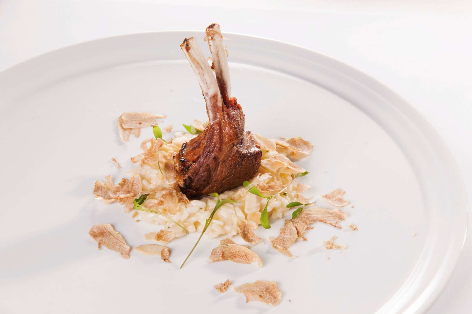 Na sequência, o capuccino de funghi com tartufo bianco é acompanhado pelo Le Difese 2022 Tenuta San Guido — um corte de Cabernet Sauvignon e Sangiovese com 92 pontos Galloni. O prato principal, carré de cordeiro com risoto Acquerello de açafrão e tartufo bianco, harmoniza com o refinado Guidalberto 2021 Tenuta San Guido, avaliado com 94 pontos pela Robert Parker.