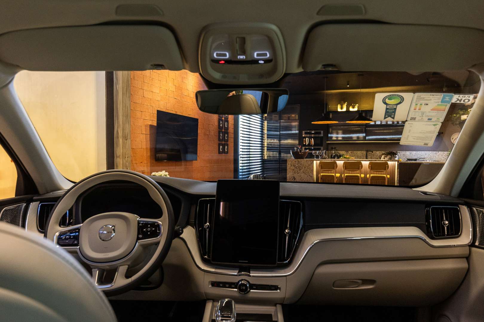A integração da garagem com uma cozinha gourmet equipada — incluindo cooktop, coifa circular e adega — transforma o ambiente em palco de encontros. A estética minimalista com toques industriais utiliza pedra, ferro e madeira em harmonia com acabamentos tecnológicos e iluminação em LED, criando uma atmosfera acolhedora e elegante.