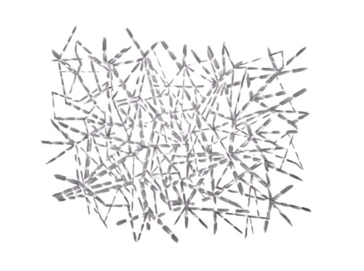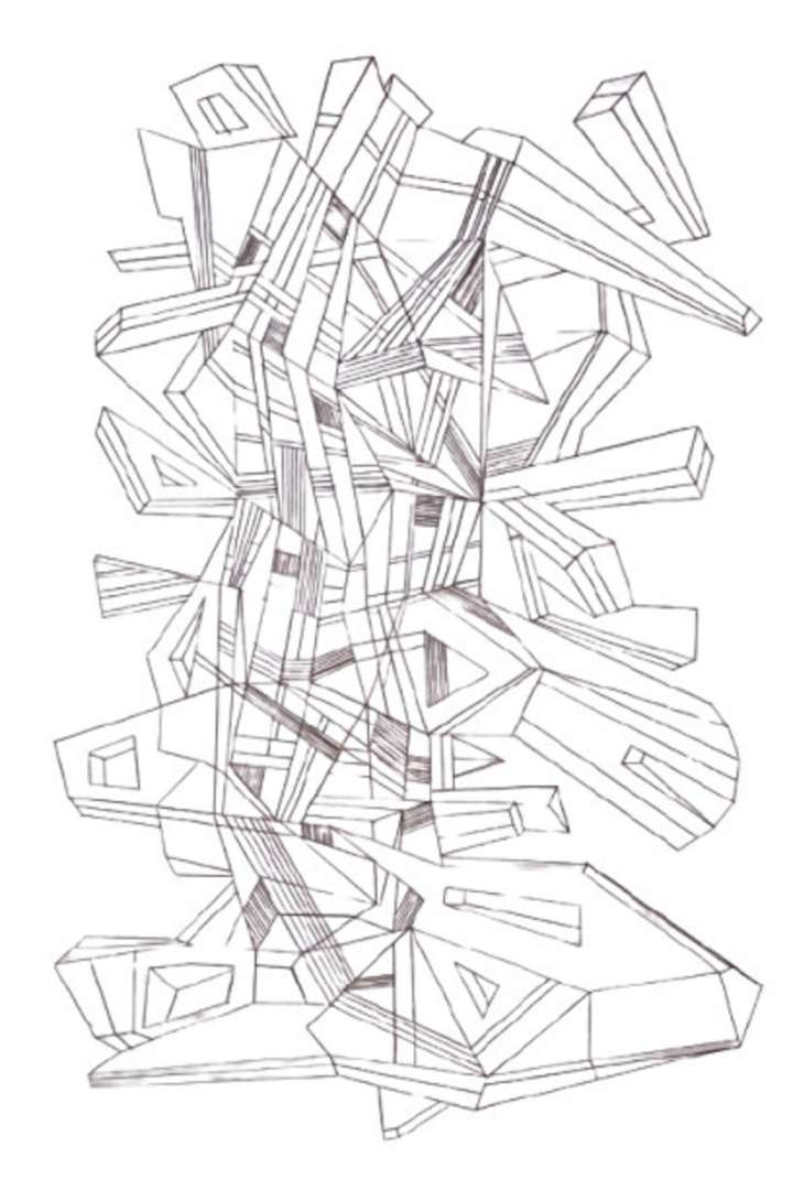 Nesta etapa, nos 07 segmentos distintos, os elementos de composição foram ressignificados em módulos mínimos — unidades filamentosas isentas de cor, cuja interação entre si gera signos minimalistas: estruturas oníricas, que emergem em sintonia à amplitude das possibilidades da forma —, e que ora ordenam as composições bidimensionais, ora se apresentam simplesmente dissociados, decomposições volumétricas; em oposição às etapas pretéritas desenvolvidas a partir de fragmentos coloridos — resultado do acúmulo das linhas, concebidos sob livre inspiração poligonal.