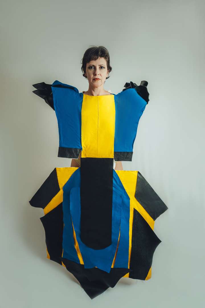 Sua atual coleção teve início com uma pesquisa imagética baseada no Construtivismo Russo, movimento artístico que sempre a inspirou por explorar formas geométricas, cores vibrantes e a integração entre arte, design e vida cotidiana. A partir desse legado, construiu cada traje - outra denominação dada às peças - por meio da justaposição de recortes geométricos coloridos que, ao se encontrarem, estabelecem tensões, equilíbrios e ritmos visuais. Assim, opina a artista, as armaduras deixam de ser meros objetos de proteção e tornam-se arquiteturas corporais que evocam energia, movimento e transformação.