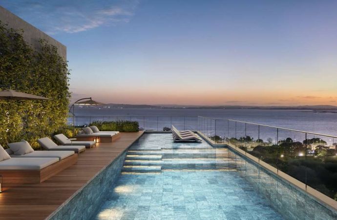 No topo do prédio, o rooftop será o ponto alto do empreendimento: com vista em 360º da cidade, reúne piscina panorâmica com guarda-corpo em Sistema QRaling, que permite vista para o horizonte sem interrupções, e bancada elevada para conversas e drinks a qualquer hora do dia ou da noite — um cenário que transforma o dia a dia em celebração.