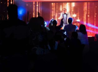 Mais do que subir ao palco, ele criou um projeto com estrutura própria de alto nível, levando uma equipe de 20 pessoas, equipamentos de sonorização, telões, iluminação, microfones, recursos audiovisuais e buffet.