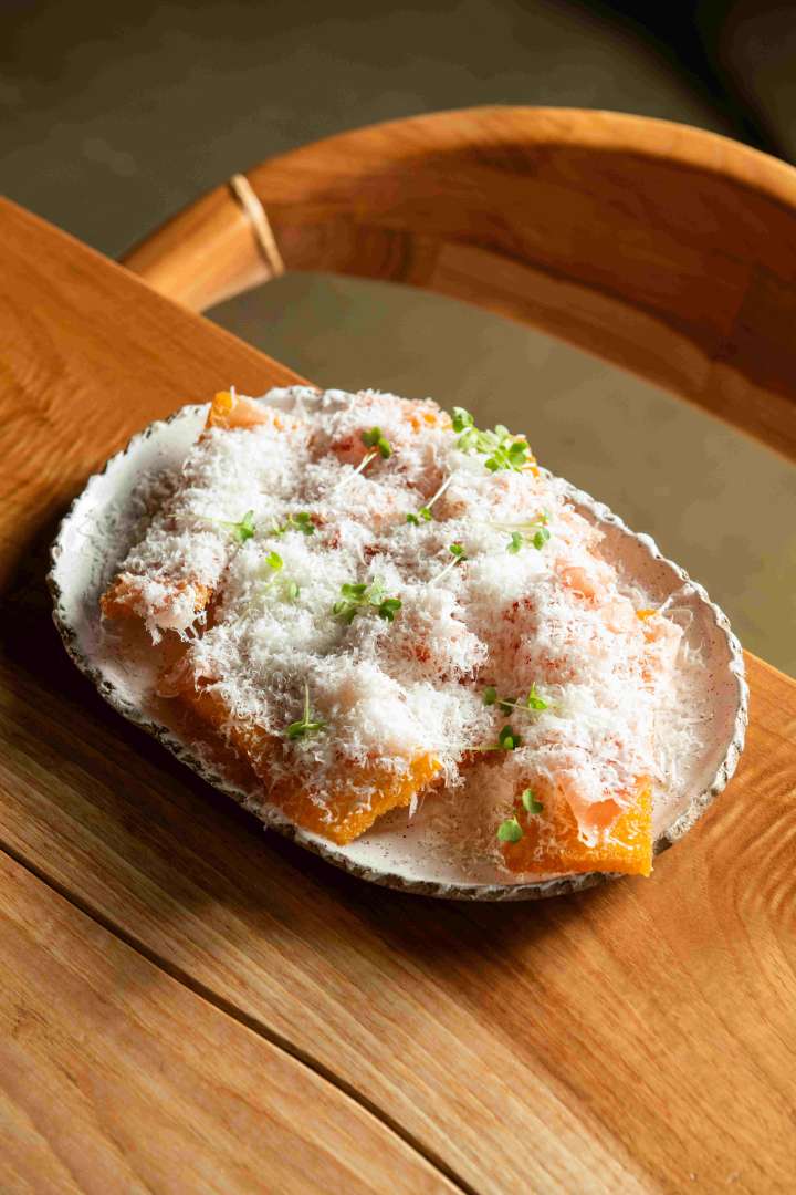O cardápio leva a assinatura do chef Filipe Andrade, que propõe releituras da cozinha italiana com técnicas contemporâneas e ingredientes selecionados. Entre as sugestões para desfrutar da varanda em sua plenitude, a dica do chef é a Polenta Crocante al Gran Formaggio se destaca como entrada para compartilhar, combinando textura crocante por fora e macia por dentro, acompanhada de queijo Gran Formaggio e presunto Gran Nero.
