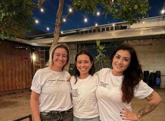 Legenda: ao centro Graziela Braga, gerente geral, e Flavia Sffair, diretora da Mostra, com profissionais 2026